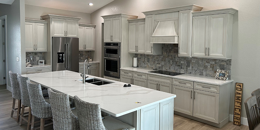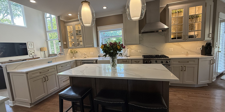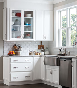 Thomasville’s Room Visualizer lets you select cabinet style, finish, countertop, flooring, backsplash, and more in a pre-designed room. Once you’re done, send a PDF of your selections to yourself or your designer to kick off your project!