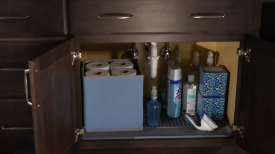 The underutilized space typically serving as a decorative toekick now has a purpose!
