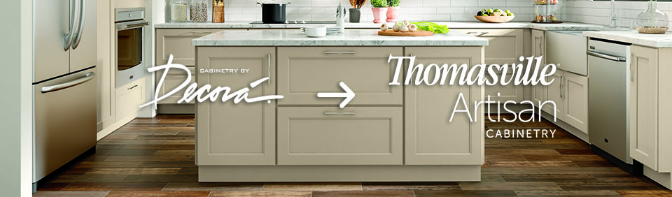 Decora at The Home Depot has been rebranded to Thomasville Artisan Collection. Rest assured, this is simply a name change, and you will still find the same high quality product and an even more on-trend offering.