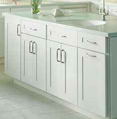 - Flat-panel, Shaker-style door treatments are a strong design theme and are easy to maintain due to their lack of ornamentation.