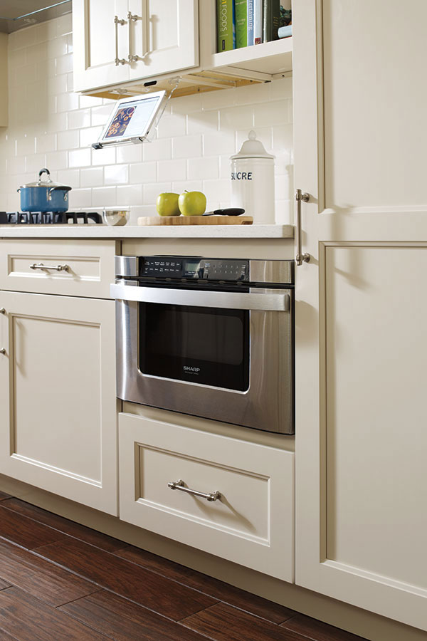 This cabinet is ideal for this application, and an added drawer below gives you more storage.