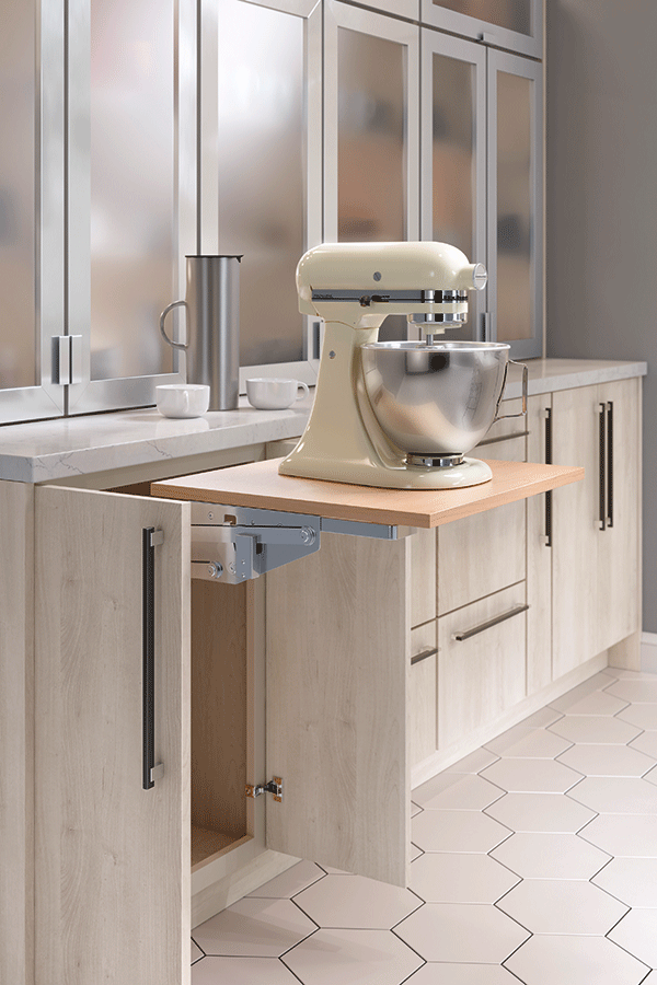 The days of lifting heavy mixers out of the cabinet and onto the counter are no more. The Base Mixer Cabinet does the work for you and provides a permanent home for your mixer.