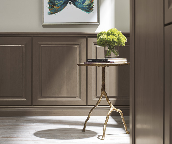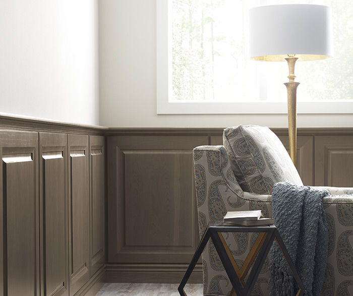 The Drennan's raised panel door front is on trend and beautifully transitions from room to room. Drennan is a full overlay door style.