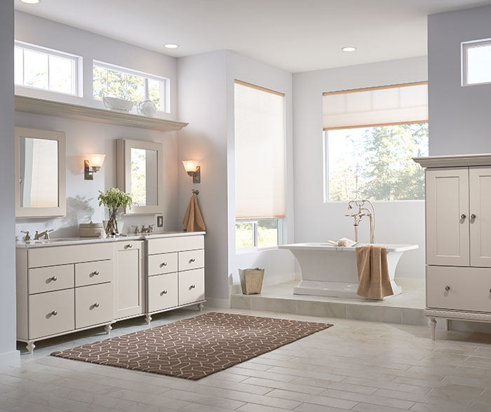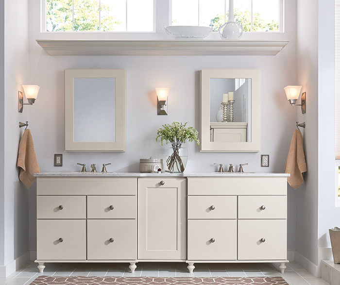 Drawer space in a vanity is a must-have, and when it is as beautiful as it is functional, it's a win-win! The Horseshoe cabinet paint color is a calming neutral, perfect for a bathroom oasis.