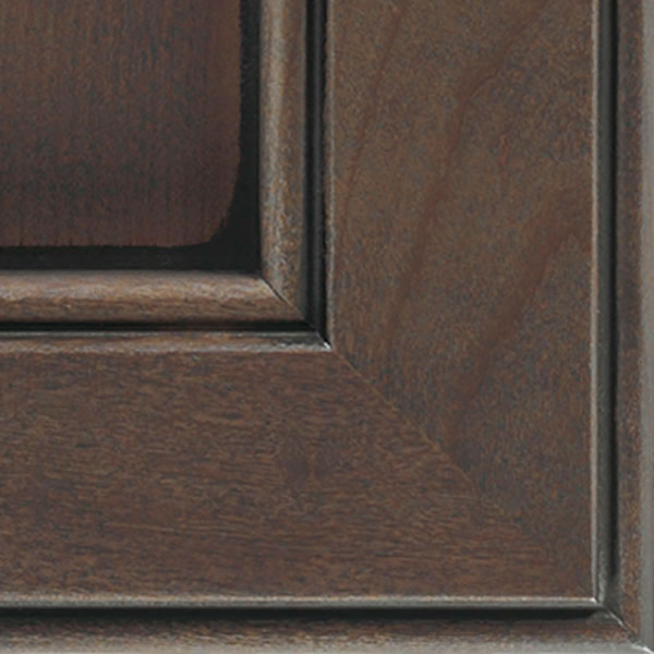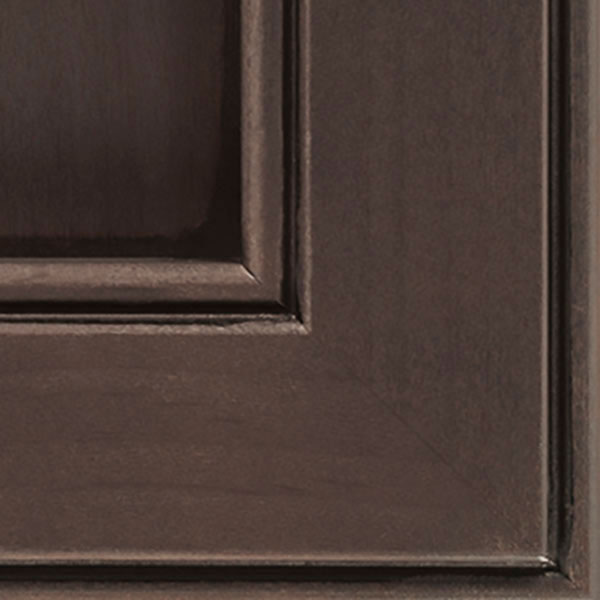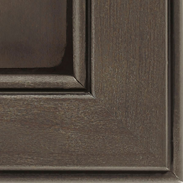 Dusk Ink Glaze cabinet finish allows for most of the grain to show through, creating a deep brownish-gray coverage that has a naturally weathered wood look, topped with a true black glaze.