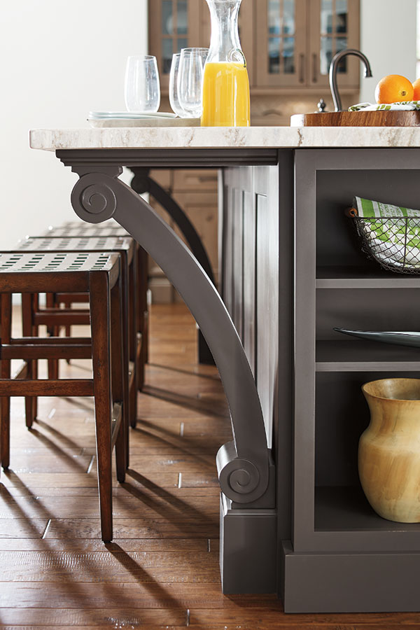 Elegant curvature creates a statement with the Corbel Leg, perfect for islands.