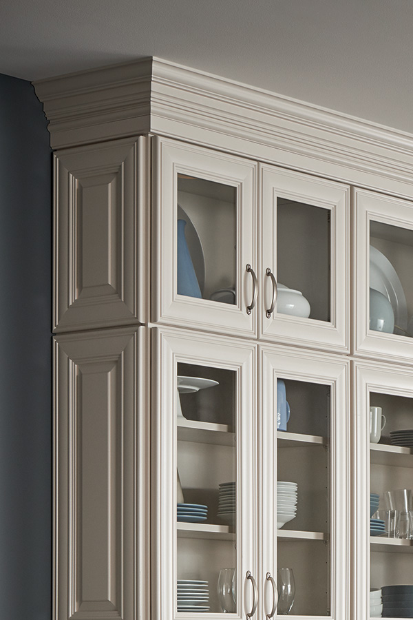 Achieve an elegant and classic look in your kitchen with Solid Wood Victorian Crown Moulding. Consider using it in conjunction with the Soffit Filler, as shown in this image, for an even more regal look.