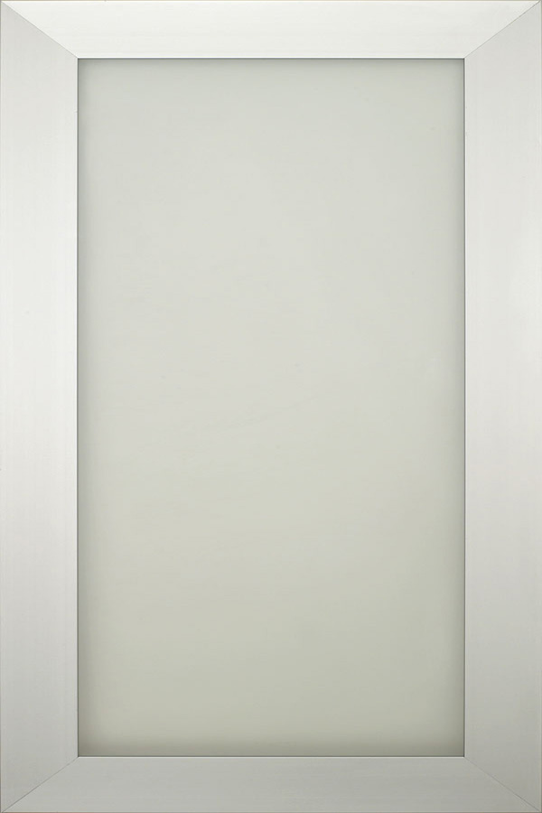 Add a modern accent to your design using one of our Aluminum Frame Door options, which span contemporary, Euro and transitional styles. Shown here in an Aluminum Finish with Frosted Glass Panel for attractive hidden storage.