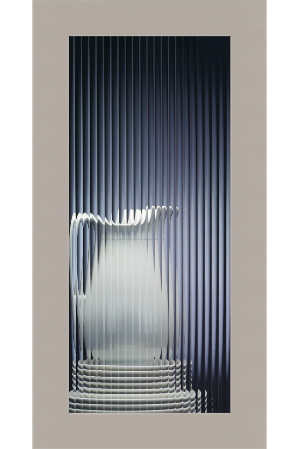 Vertical lines provided a classic sense of style while blurring the contents of the cabinet.
