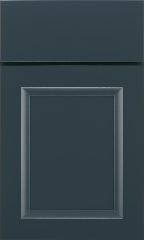 Calming neutrals set the scene for this casual kitchen, while on-trend blue base cabinets and island add more fashion to the functional space. A dry bar area provides a beautiful home for storing your favorite vintage with style.